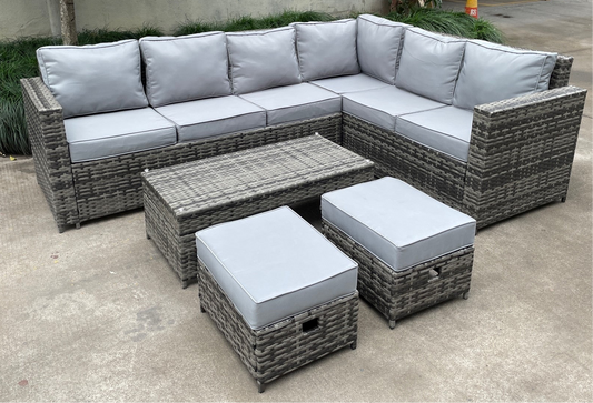 SFS078 – Mixed Grey Rattan 7 Seater Sofa Dining Set