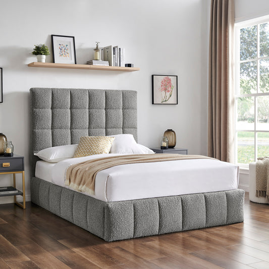 The Bed Collection Sleigh Dark Grey Linen Ottoman Bed Frame