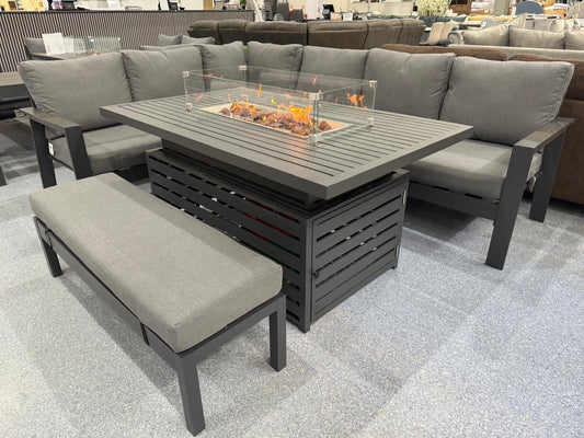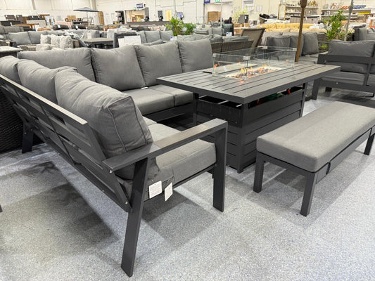 Vegas Grey Aluminium Large Corner Fire Pit Table Set