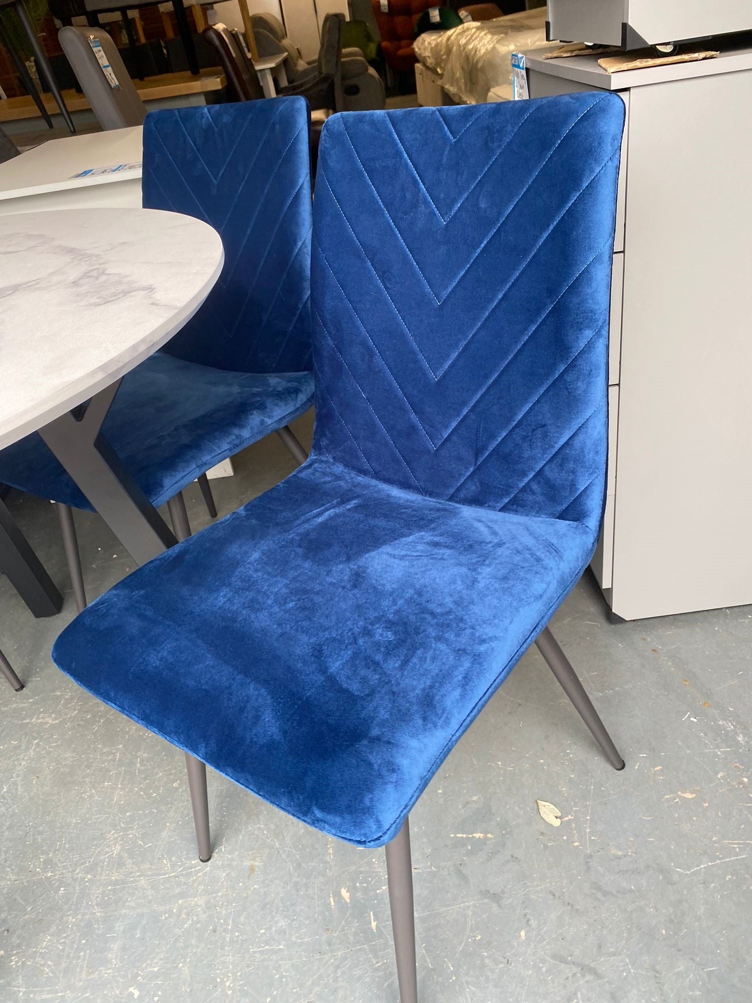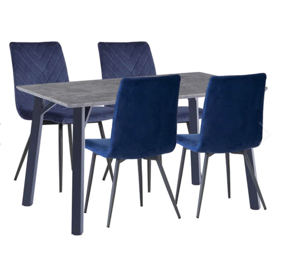 Grey Concrete Effect Table - Blue or Grey Plush Velvet Chairs