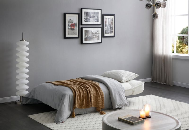 It is upholstered in sherpa fabric, which adds coziness and luxury to the sofa bed,