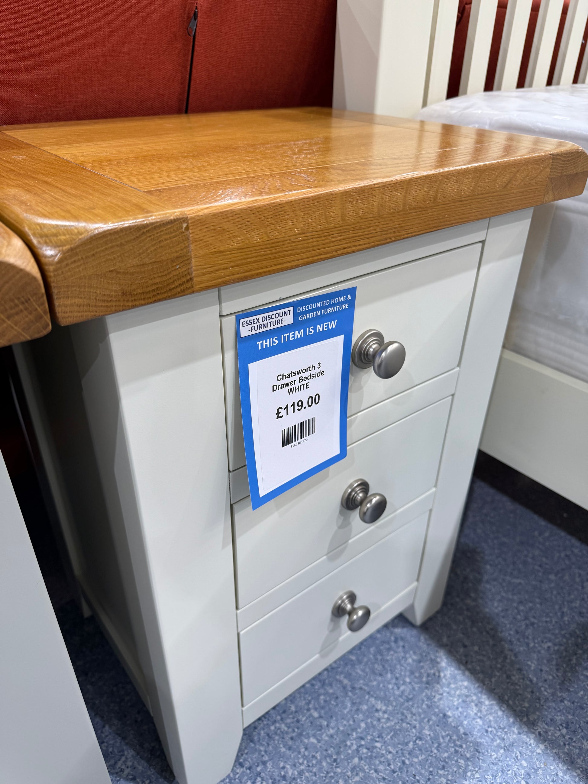 Chatsworth 3 Drawer Bedside WHITE
