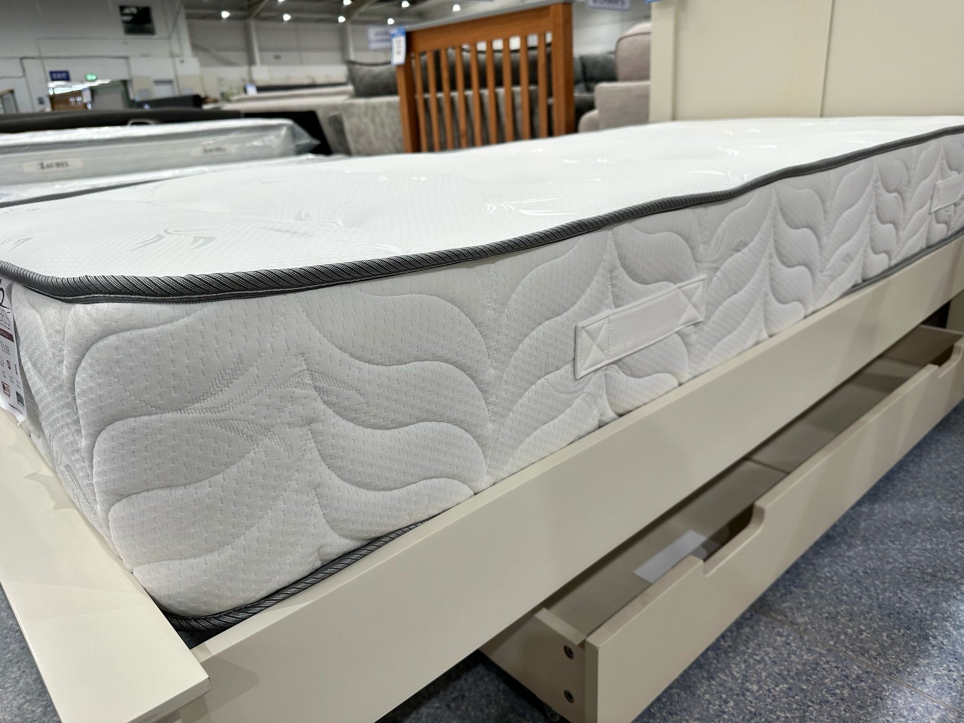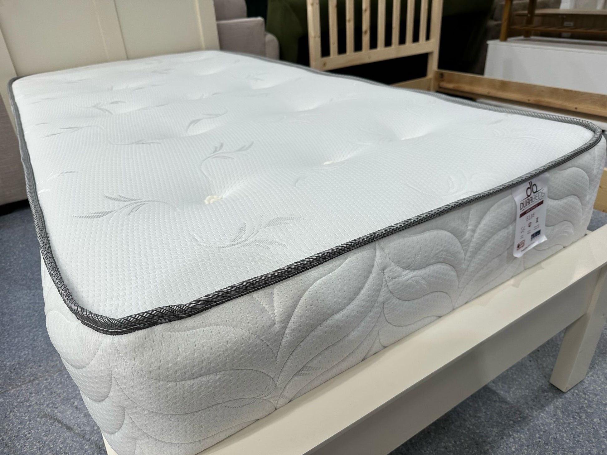 The Elbe Mattress is a deep cushion tufted open coil sprung mattress.